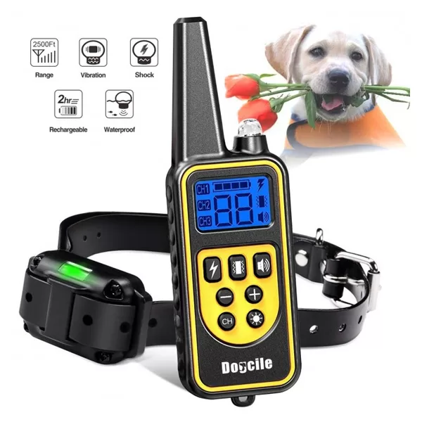 je savršena sprava koja će pre svega zaštiti psa od krađe ili gubljenja, takođe poći će da ljubimac brzo nauči mnogo toga što želite. Novi model odlikuje 4 načina rada prilikom dresure – zvuk, šok, svetlo i vibriranje, omogućavajući vam da lako dresirate ili odvikavate psa od loših navika, bezbedno i efikasno. Transmiter i receiver su punjivi, a mogućnost podešavanja dometa do 300m na otvorenom pruža vam kontrolu u različitim situacijama. Ova vodootporna ogrlica je idealna za obuku pasa svih uzrasta, uz više od 3.000 različitih kodova za sprečavanje preplitanja sa drugim ogrlicama. Sa daljinskim upravljačem sa LCD ekranom i lako vidljivim indikatorom stanja baterije, ovaj set omogućava efikasno dresiranje vašeg psa. Set sadrži transmiter, receiver, test svetlo, podesivu ogrlicu, kabl za punjenje, punjač, šok elektrode i uputstvo. Izdresirajte svog psa jednostavno uz ovaj trenažer za dresuru i obuku. Šaljemo na vašu adresu, plaćanje pouzećem, isporuka za 24h.